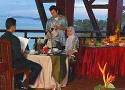 DiTerrace yang ala carte menyajikan masakan tempatan. Para tetamu boleh berehat di bar kolam renang di sini.